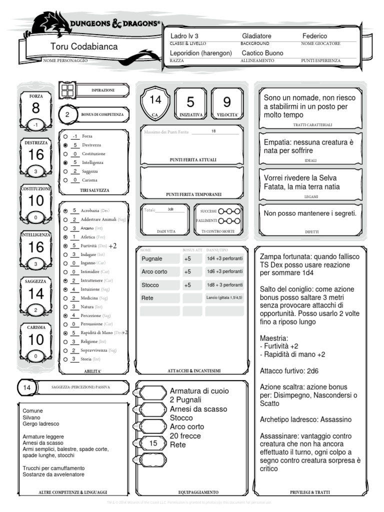 NOME PERSONAGGIO RAZZA ALLINEAMENTO PUNTI ESPERIENZA