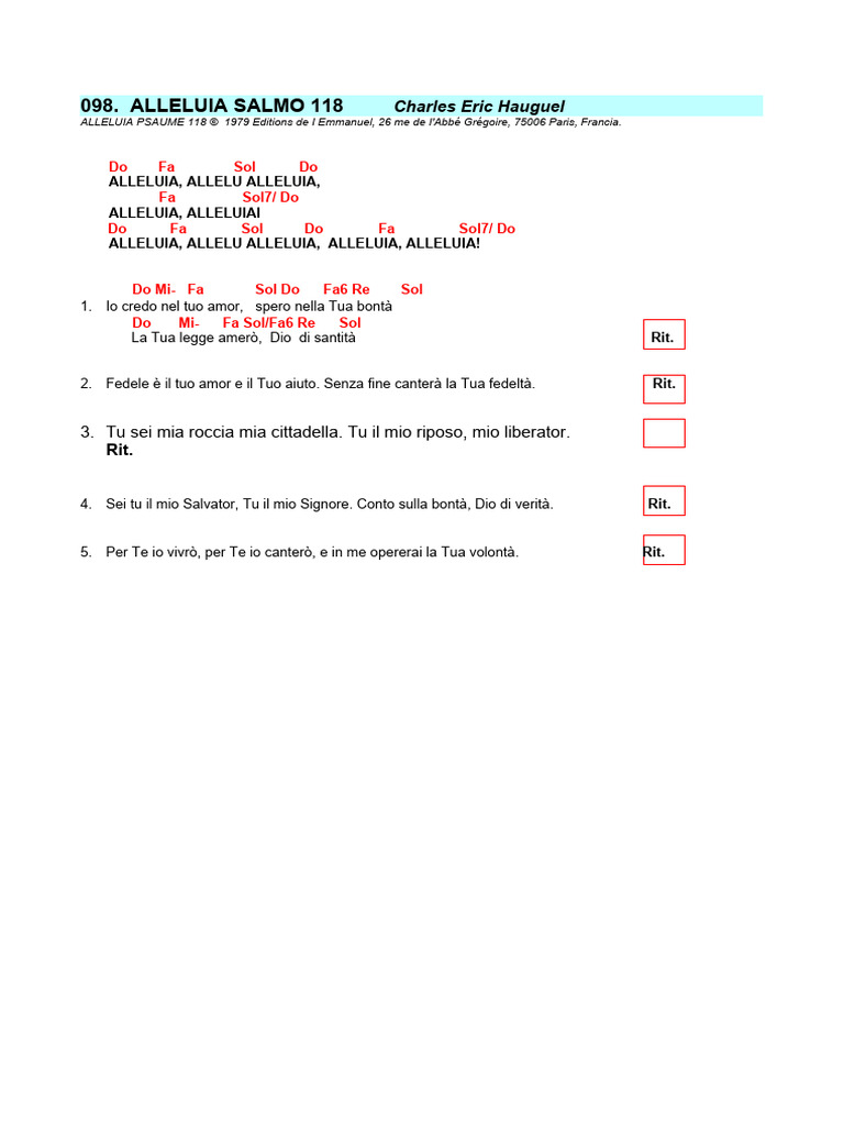 ALLELUIA PSAUME 118 © 1979 Editions de I Emmanuel, 26 me de I'Abbé Grégoire, 75006 Paris, Francia.