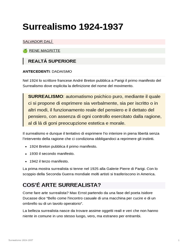 SURREALISMO: automatismo psichico puro, mediante il quale