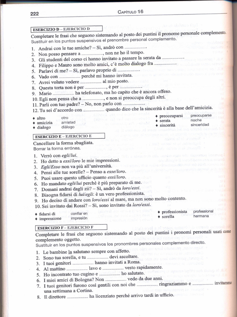 Completare le frasi che seguono sistemando al posto dei puntini i pronomi personali usati