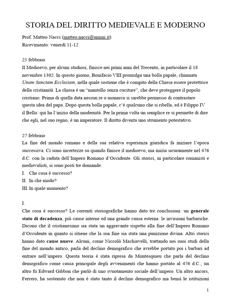 Storia Del Diritto Medievale e Moderno