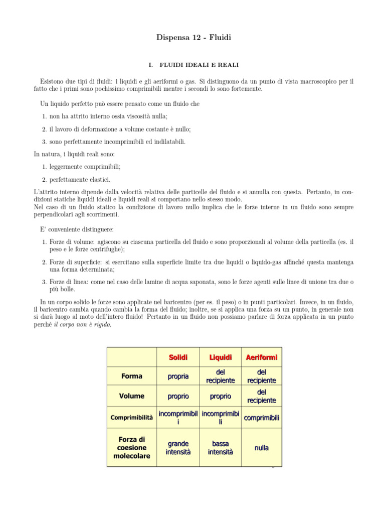 Esistono due tipi di fluidi: i liquidi e gli aeriformi o gas. Si distinguono da un punto di vista macroscopico per il