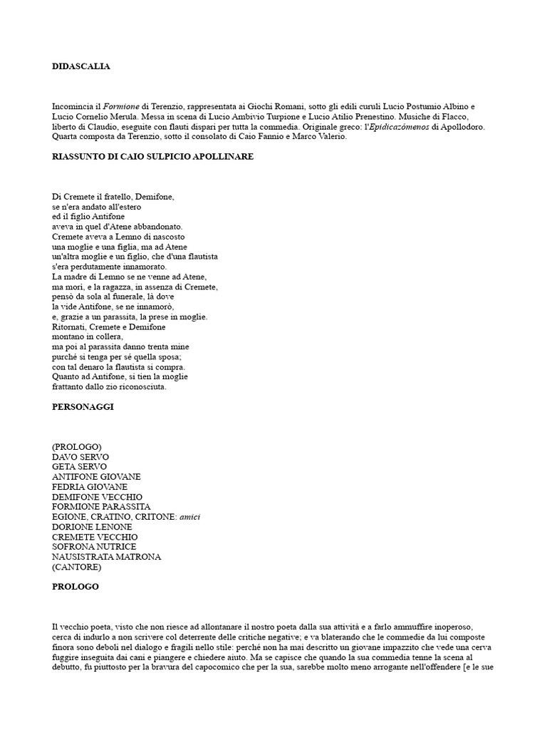 Incomincia il Formione di Terenzio, rappresentata ai Giochi Romani, sotto gli edili curuli Lucio Postumio Albino e