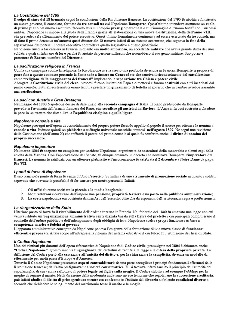 militari. Napoleone si impose alla guida della Francia grazie all’elaborazione di una nuova Costituzione, detta dell’anno VIII,