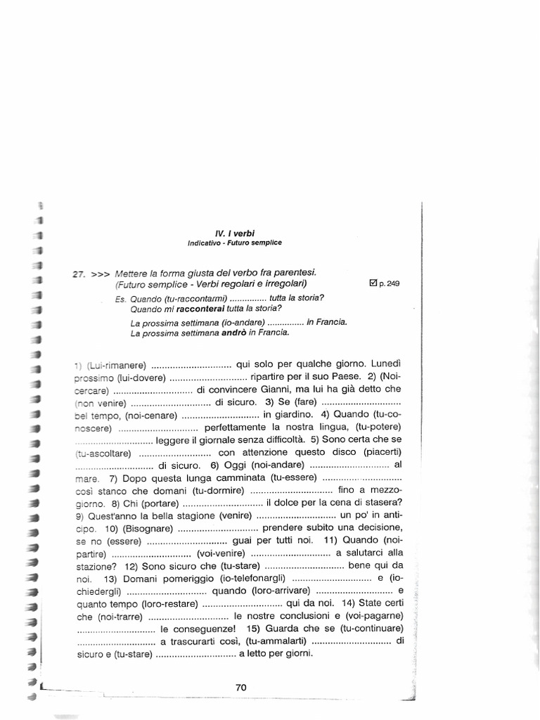 27. >>> Mettere la forma giusta del verbo fra parentesi.