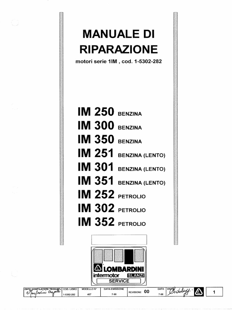 Lombardini Manuale Riparazione Motori 1IM 1-5302-282