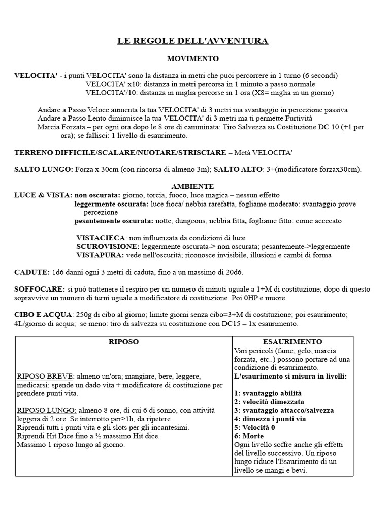 CADUTE: 1d6 danni ogni 3 metri di caduta, fino a un massimo di 20d6.