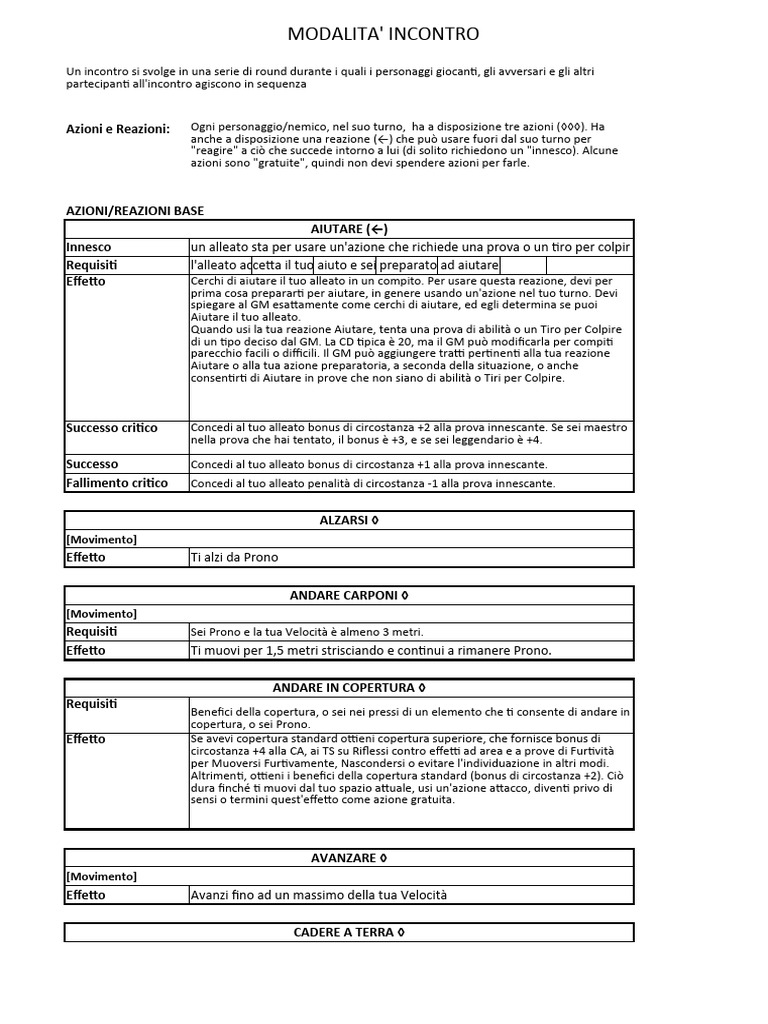 Azioni e Reazioni: Ogni personaggio/nemico, nel suo turno, ha a disposizione tre azioni (◊◊◊). Ha