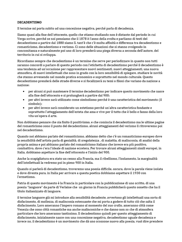 Non dobbiamo pensare che sia finito il positivismo, e che comincia il decadentismo ma le ultime pagine