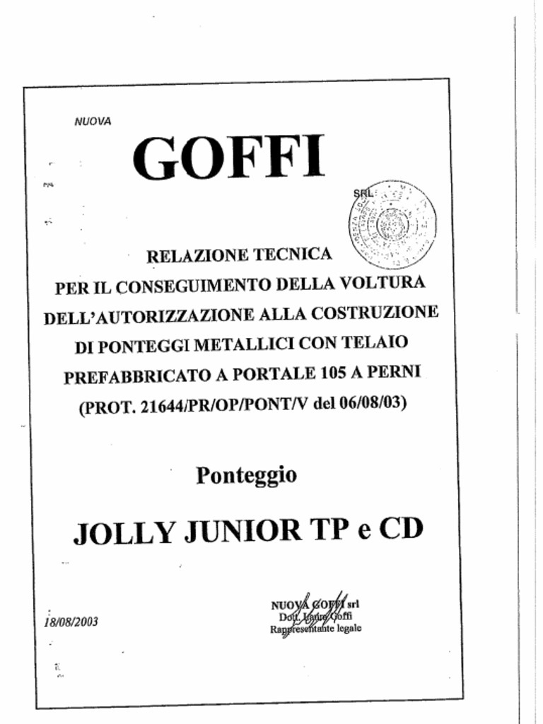 ‘Rortale 105 a perni ~ Denominazione commerciale “Jolly Junlor GD'e TP" ~ Marcio