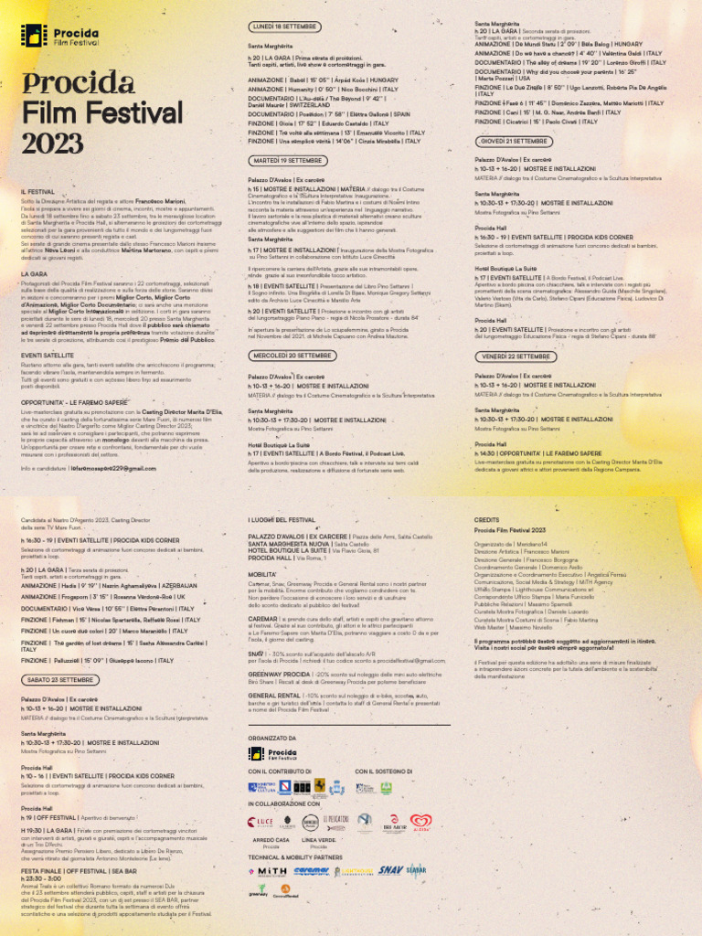 Protagonisti del Procida Film Festival saranno i 22 cortometraggi, selezionati Aperitivo a bordo piscina con chiacchiere, talk e interviste con i registi più