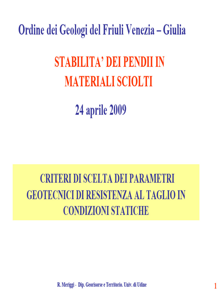 R. Meriggi - Dip. Georisorse e Territorio. Univ. di Udine 1