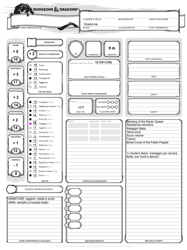 ALTRE COMPETENZE & LINGUAGGI EQUIPAGGIAMENTO PRIVILEGI & TRATTI