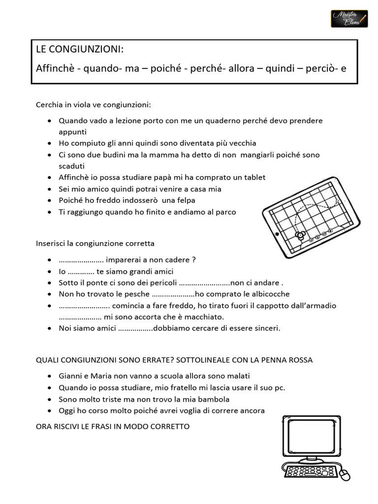 QUALI CONGIUNZIONI SONO ERRATE? SOTTOLINEALE CON LA PENNA ROSSA