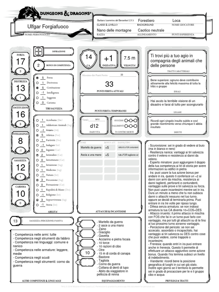 Barbaro (cammino del Berserker) LV 3 Forestiero Loca