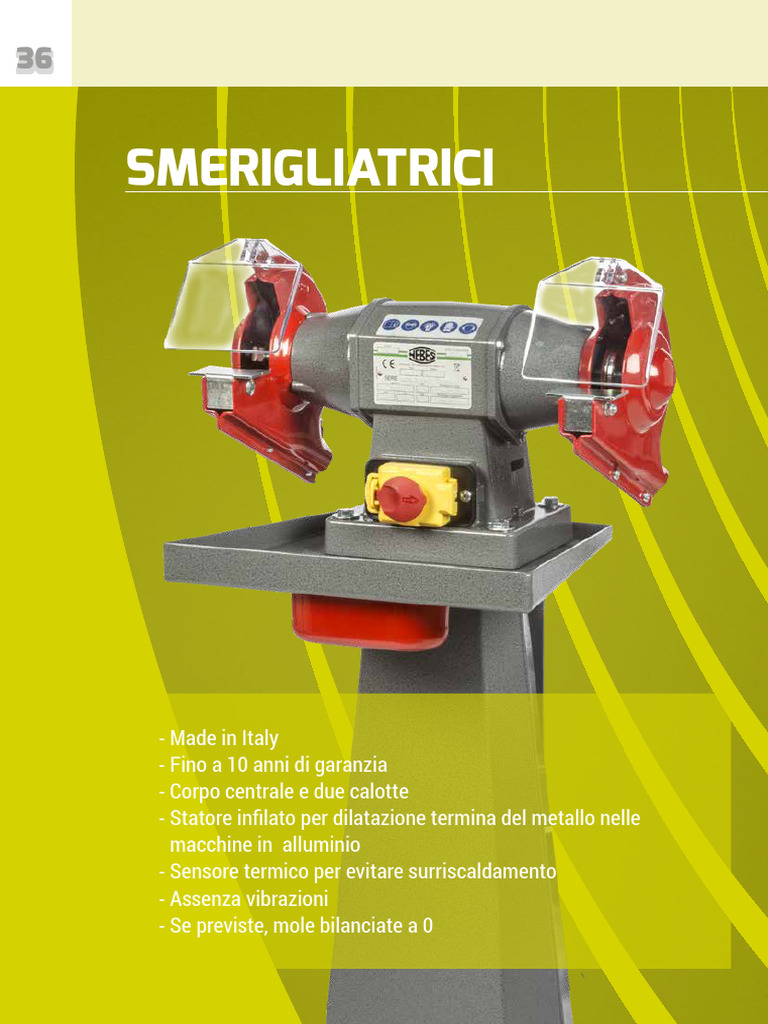 Su richiesta possono essere fornite con comando in bassa tensione 24 V - BT1 ( + € 926,00 ). La serie industriale in alluminio viene fornita senza mole montate.