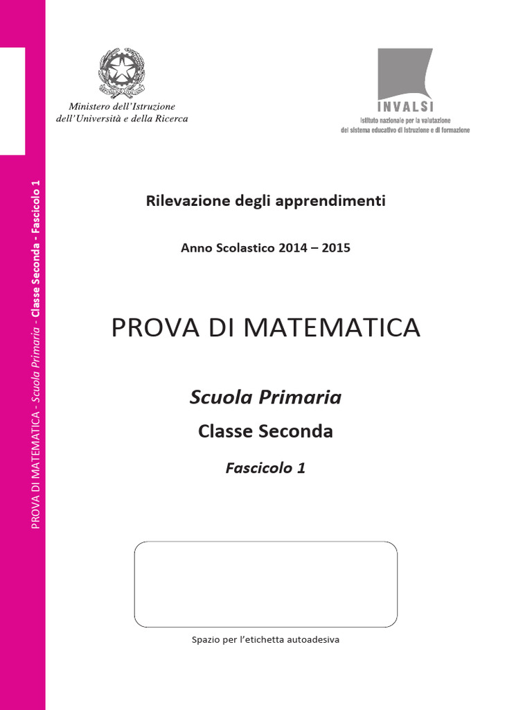 PROVA DI MATEMATICA - Scuola Primaria - Classe Seconda - Fascicolo 1