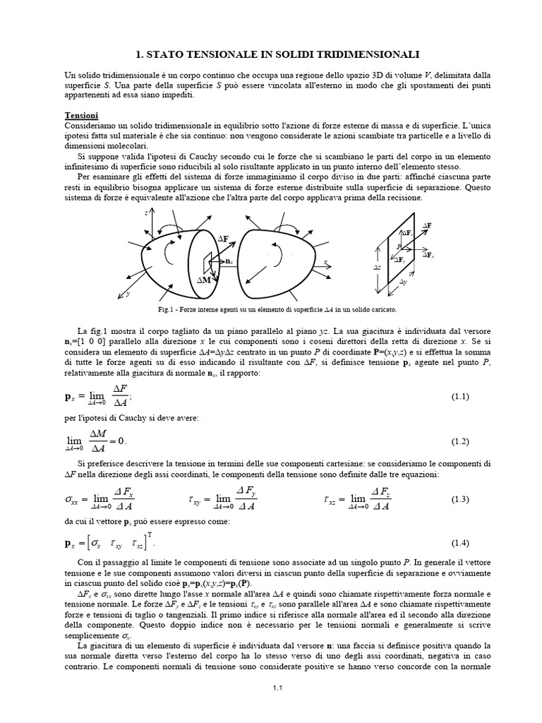 Si suppone valida l'ipotesi di Cauchy secondo cui le forze che si scambiano le parti del corpo in un elemento