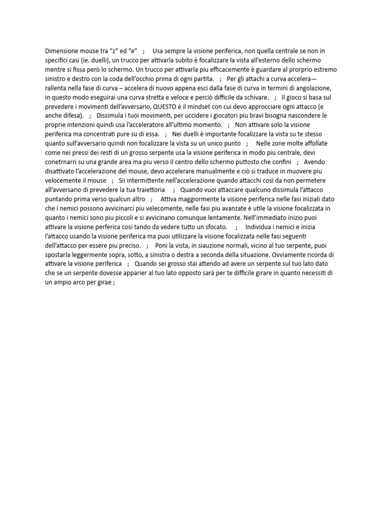 Dimensione mouse tra “z” ed “e” ; Usa sempre la visione periferica, non quella centrale se non in
