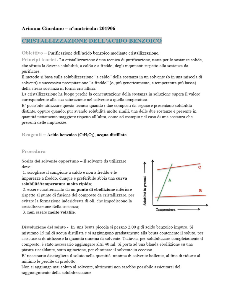 Obiettivo – Purificazione dell’acido benzoico mediante cristallizzazione.
