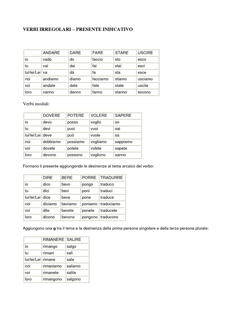 VERBI IRREGOLARI – PRESENTE INDICATIVO