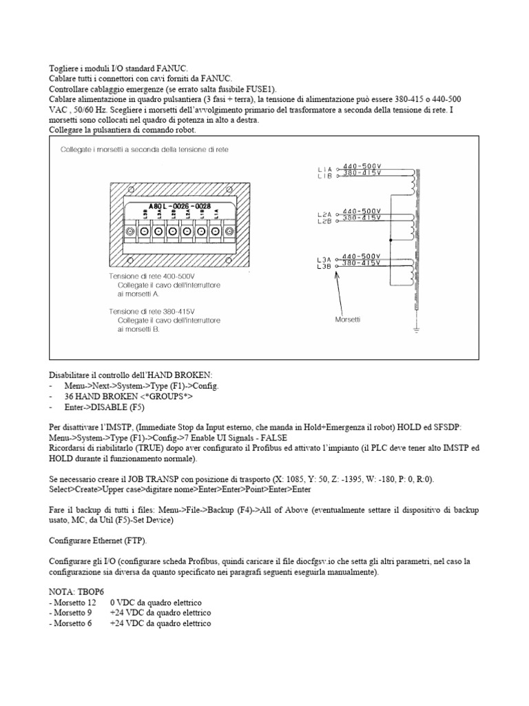 Configurare gli I/O (configurare scheda Profibus, quindi caricare il file [Link] che setta gli altri parametri, nel caso la