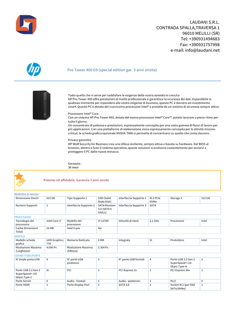 HP Pro Tower 400 offre prestazioni di livello professionale e garantisce la sicurezza dei dati. Espandibile in