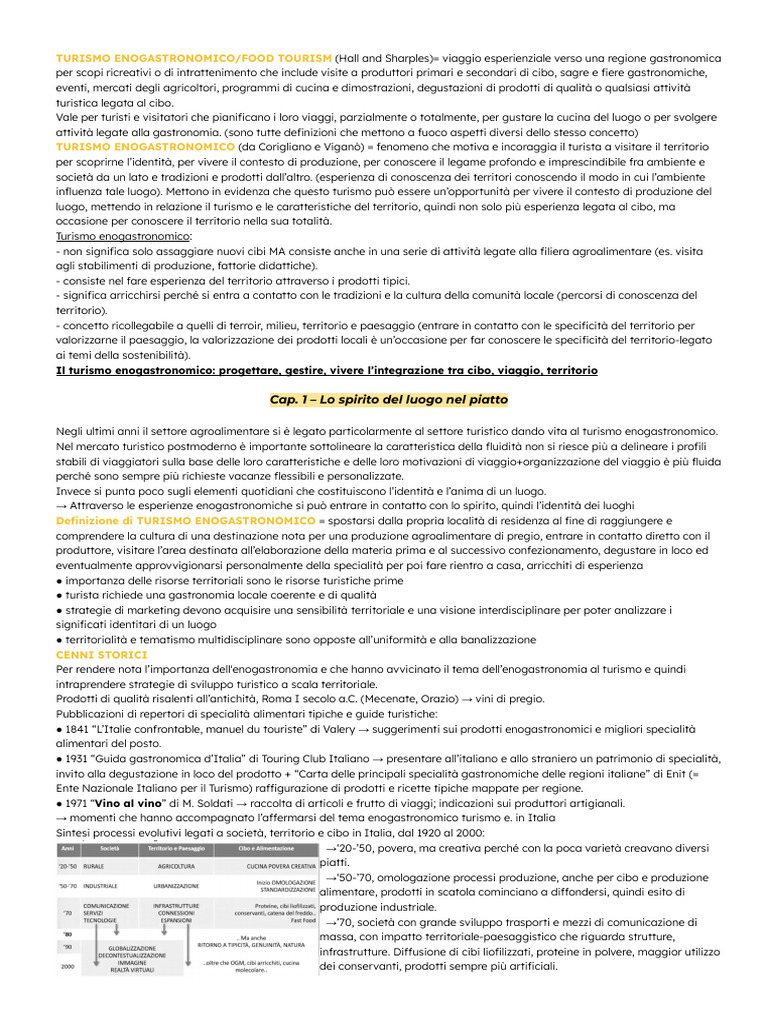 luogo, mettendo in relazione il turismo e le caratteristiche del territorio, quindi non solo più esperienza legata al cibo, ma