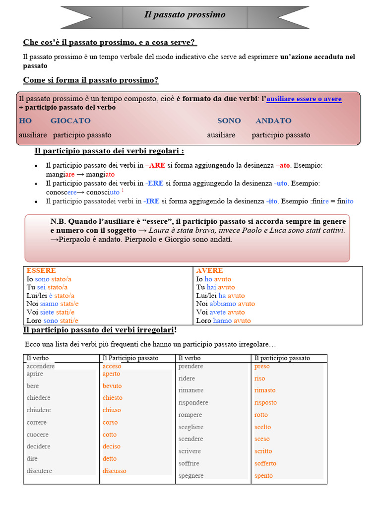 ausiliare participio passato ausiliare participio passato