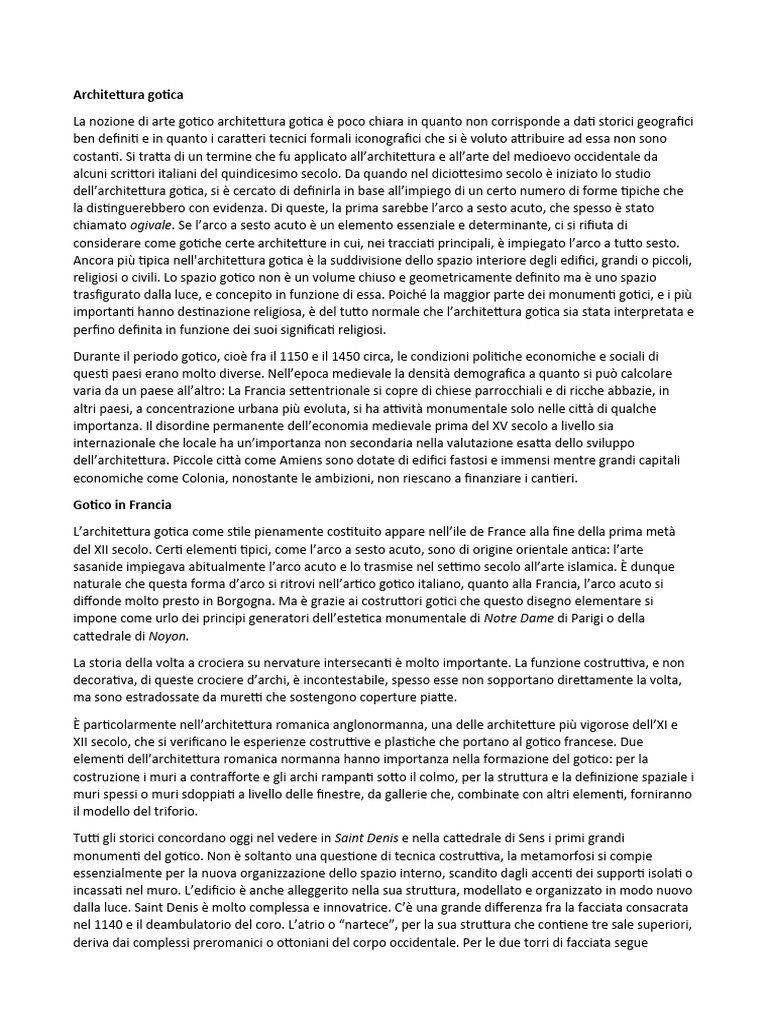 XII secolo, che si verificano le esperienze costruttive e plastiche che portano al gotico francese. Due