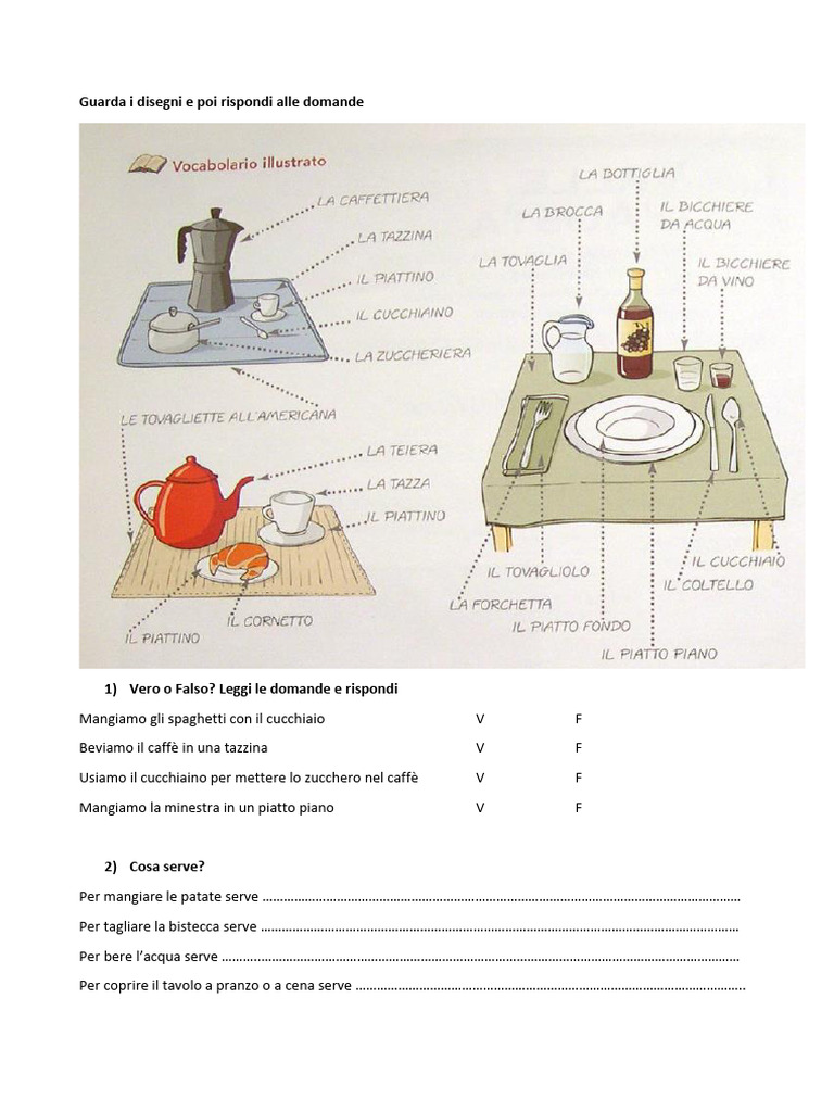 1) Vero o Falso? Leggi le domande e rispondi