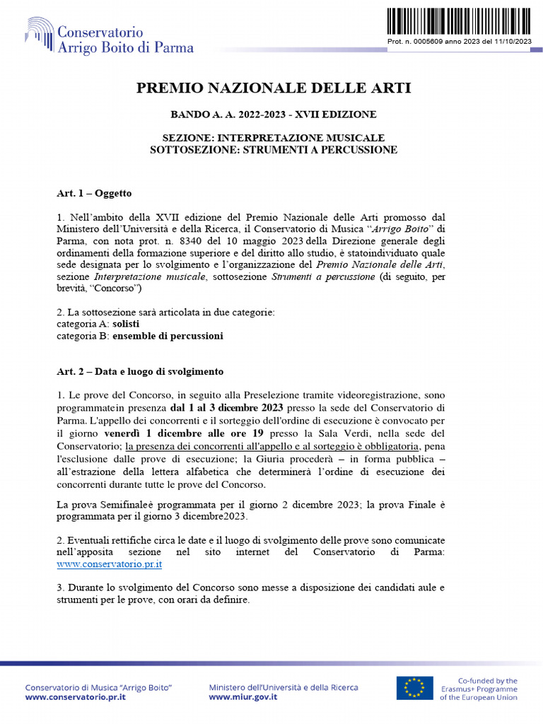 1. Nell’ambito della XVII edizione del Premio Nazionale delle Arti promosso dal