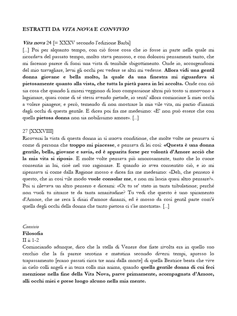 ESTRATTI DA VITA NOVA E CONVIVIO
