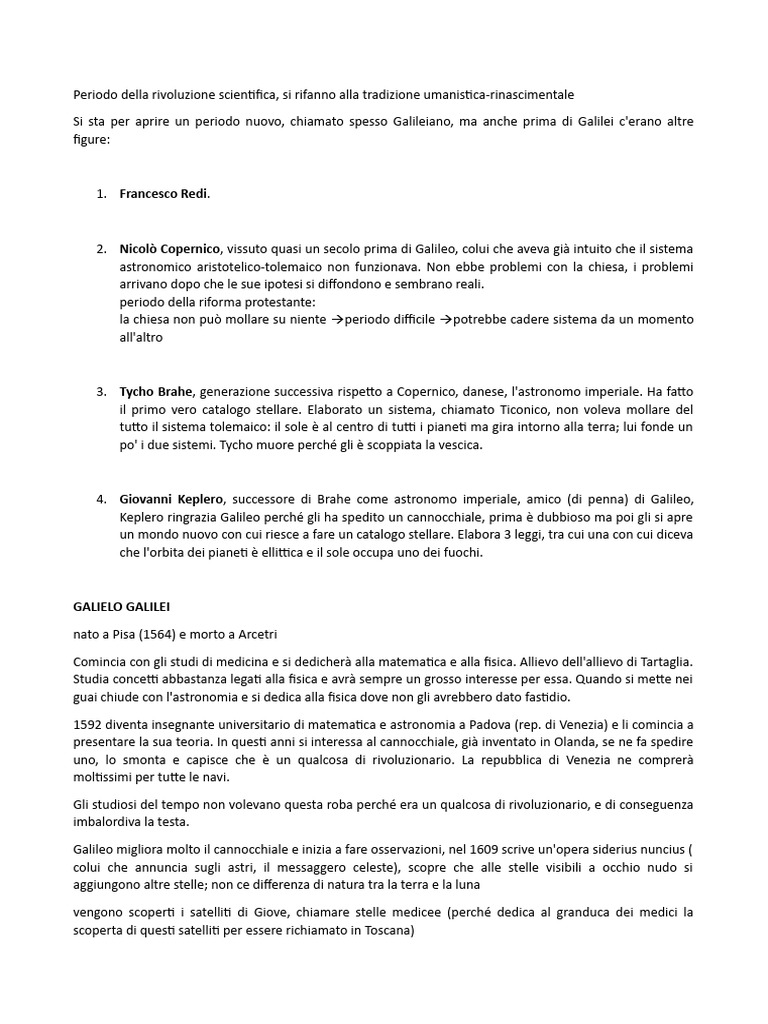 Si sta per aprire un periodo nuovo, chiamato spesso Galileiano, ma anche prima di Galilei c'erano altre