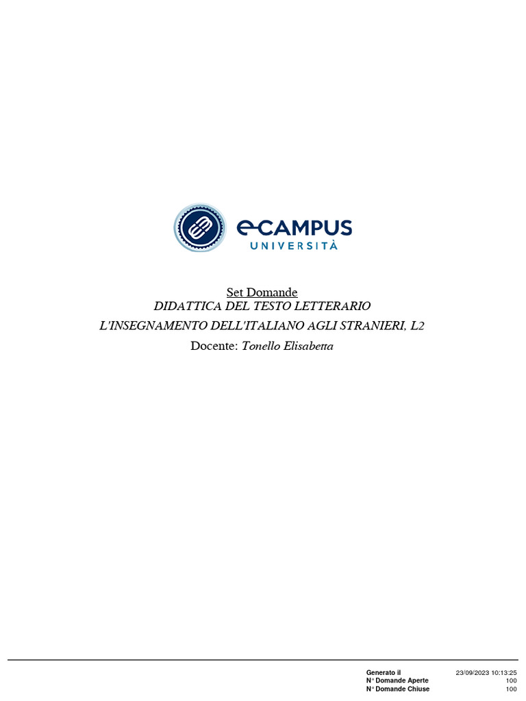 © 2016 - 2023 Università Telematica eCampus - Data Stampa 23/09/2023 [Link] - 3/20