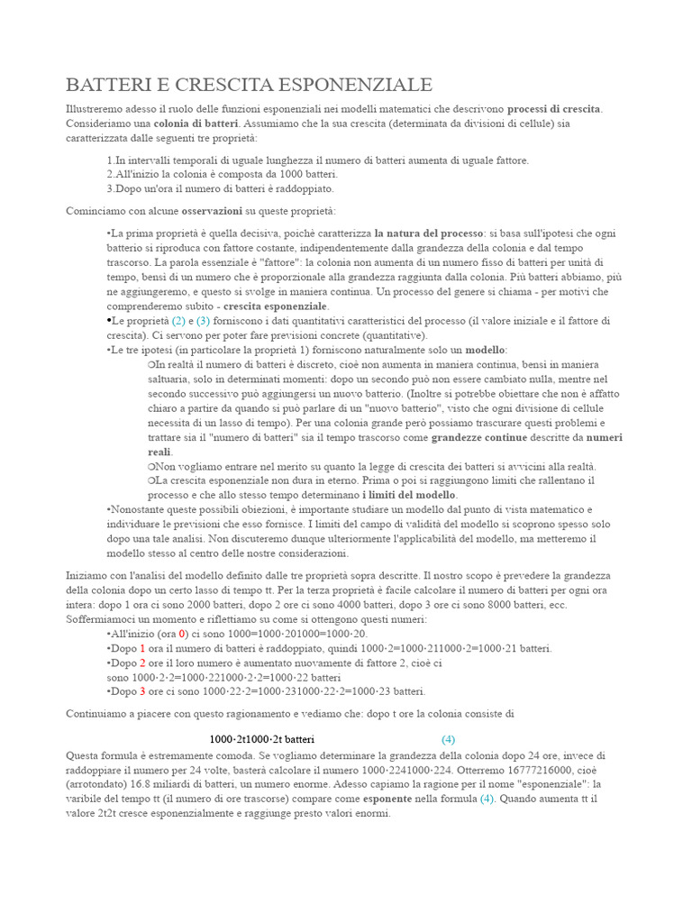 [Link] intervalli temporali di uguale lunghezza il numero di batteri aumenta di uguale fattore.