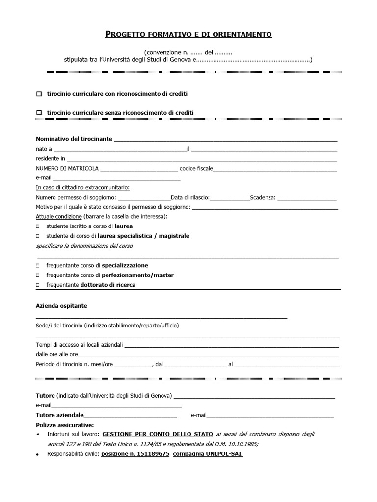 stipulata tra l’Università degli Studi di Genova e…………………………………………………………)