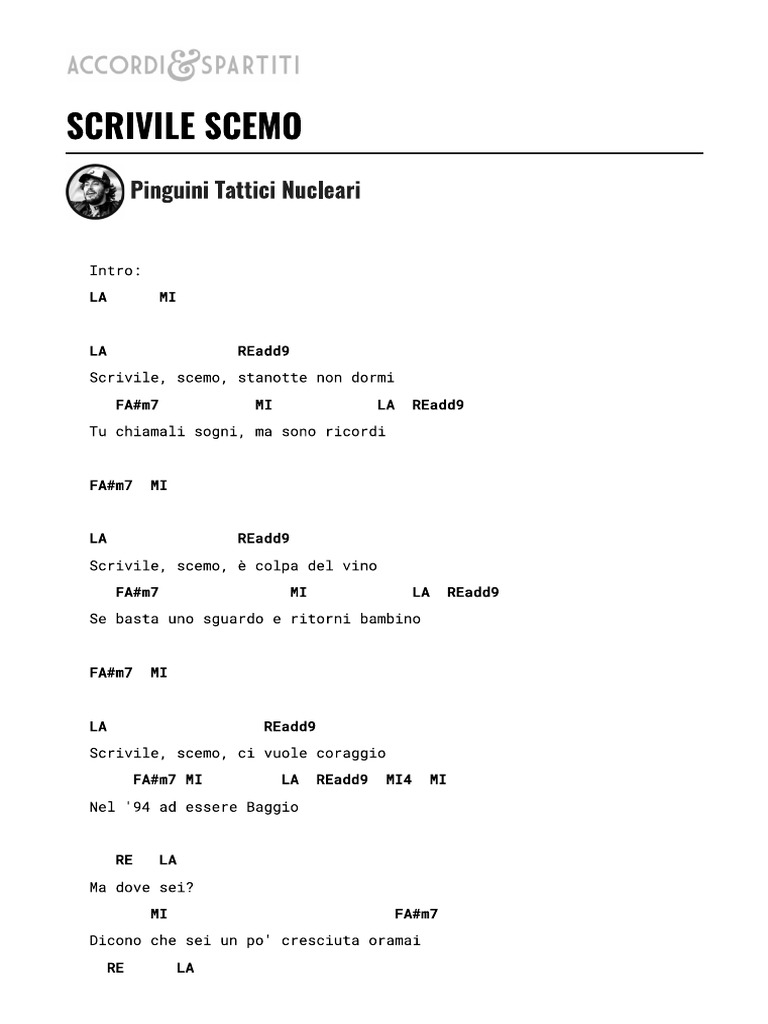 SCRIVILE SCEMO Accordi 100% Corretti - Pinguini Tattici Nucleari
