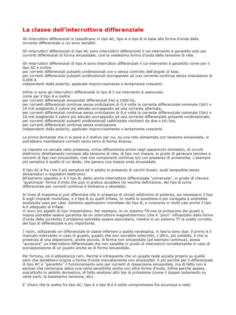 interruttore differenziale. Una affermazione molto diffusa è che gli interruttori differenziali di tipo A siano