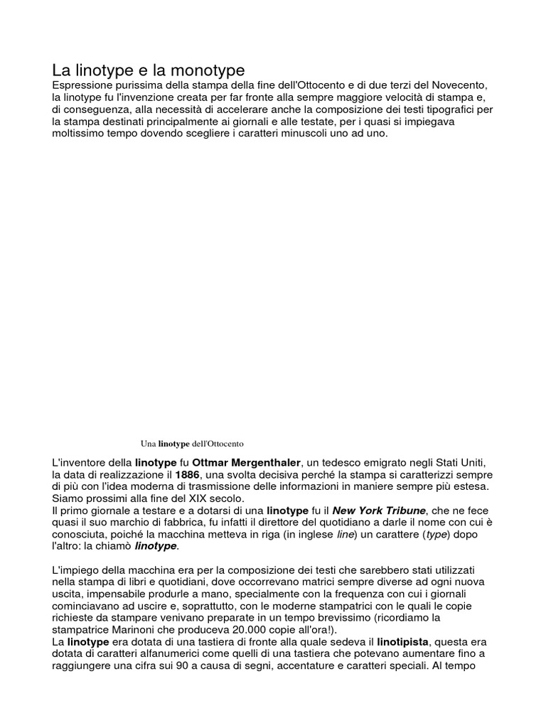 L'inventore della linotype fu Ottmar Mergenthaler, un tedesco emigrato negli Stati Uniti,