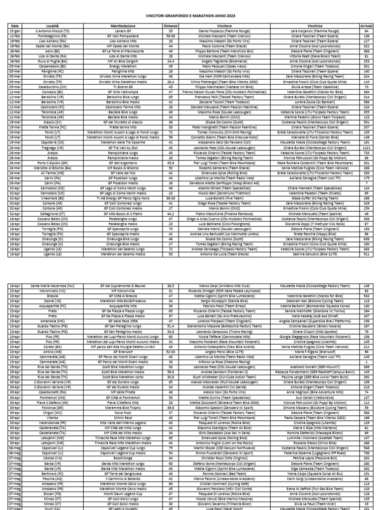 VINCITORI GRANFONDO E MARATHON ANNO 2023