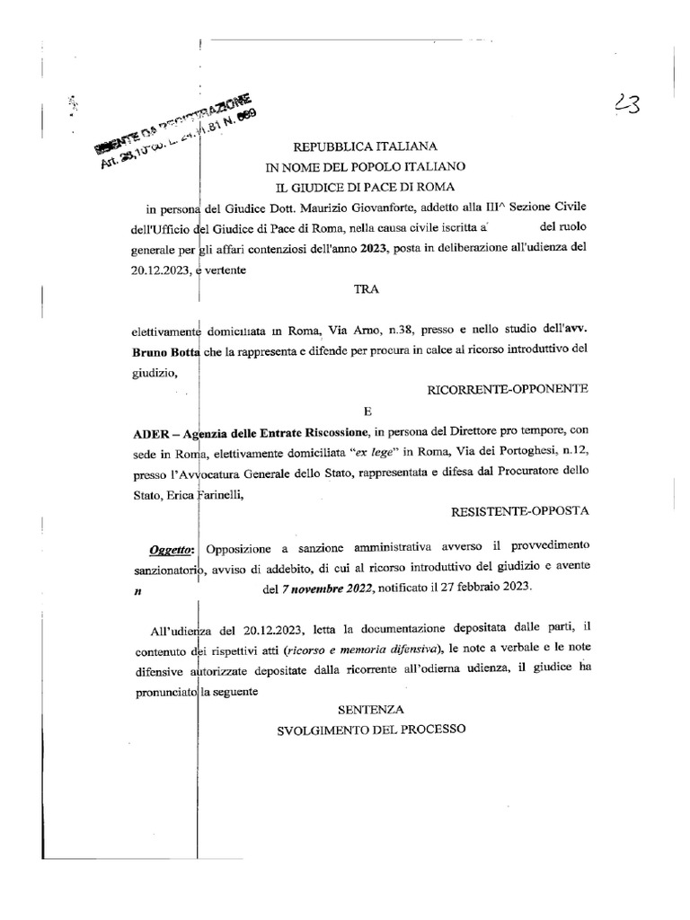 Salva 1 Sentenza GDP Roma per dopo