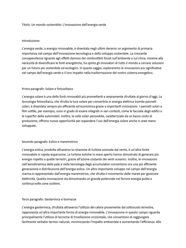 Titolo: Un mondo sostenibile: L'innovazione dell'energia verde