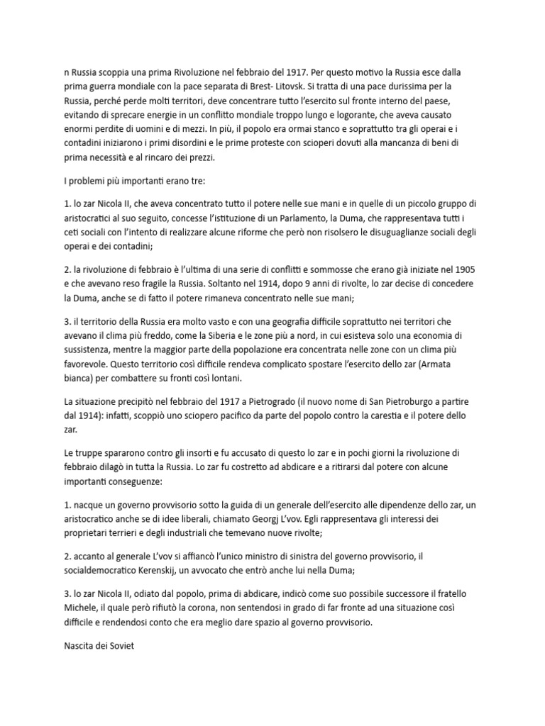 3. nacque l’U.R.S.S. (Unione delle Repubbliche Socialiste Sovietiche), cioè un’organizzazione di Stato