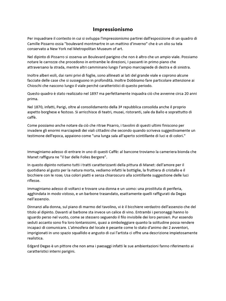 riprodotto su tela. Il movimento impressionista fu il primo a segnare una svolta decisiva nella