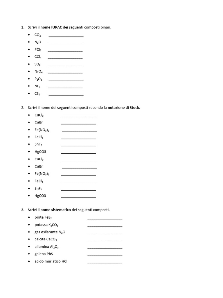 2. Scrivi il nome dei seguenti composti secondo la notazione di Stock.