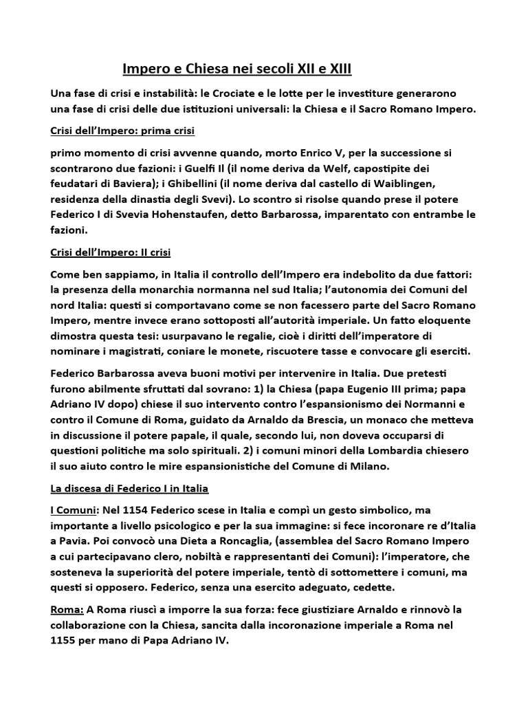 Impero e Chiesa nei secoli XII e XIII