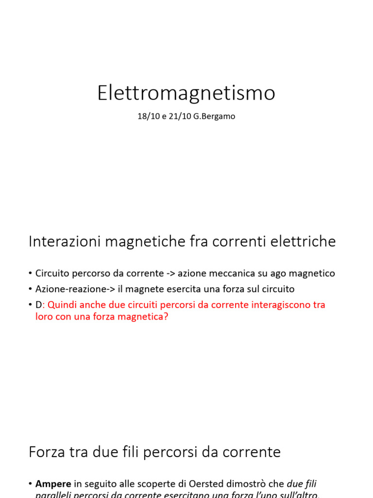 Interazioni magnetiche fra correnti elettriche