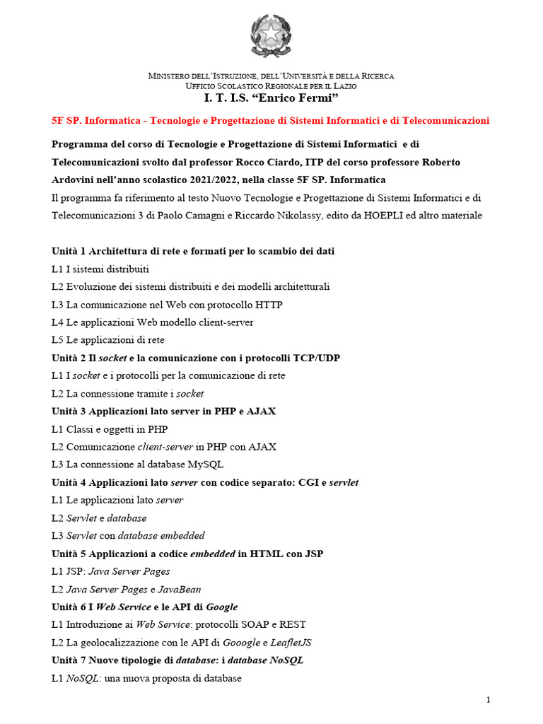 5F SP. Informatica - Tecnologie e Progettazione di Sistemi Informatici e di Telecomunicazioni