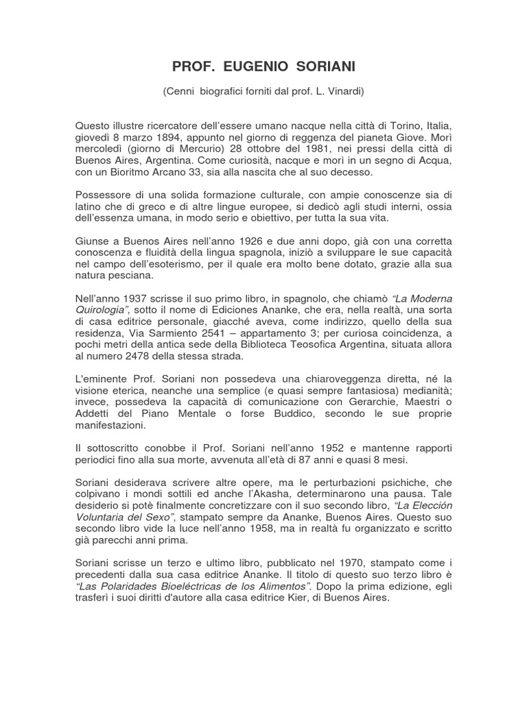 L'eminente Prof. Soriani non possedeva una chiaroveggenza diretta, né la
